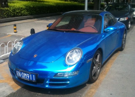 Porsche 911 Targa 4S in metallic-shiny-blue in China