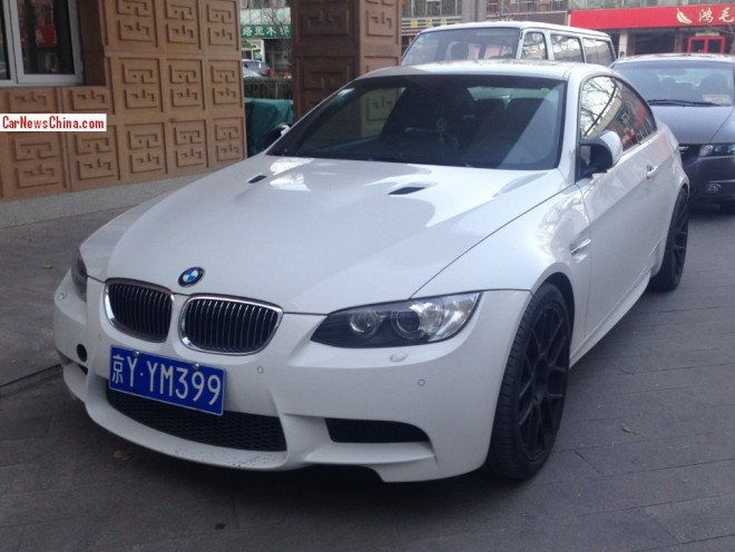 A wondrous white BMW M3 Coupe, Spotted in China in the Lido area in Beijing. The license plate reads YM399 and that is one of the best license plates we have seen on a BMW M3 in China. The beastly Bimmer was sexed up further by tinted windows and incredible coolio 12-spoke matte black alloys.