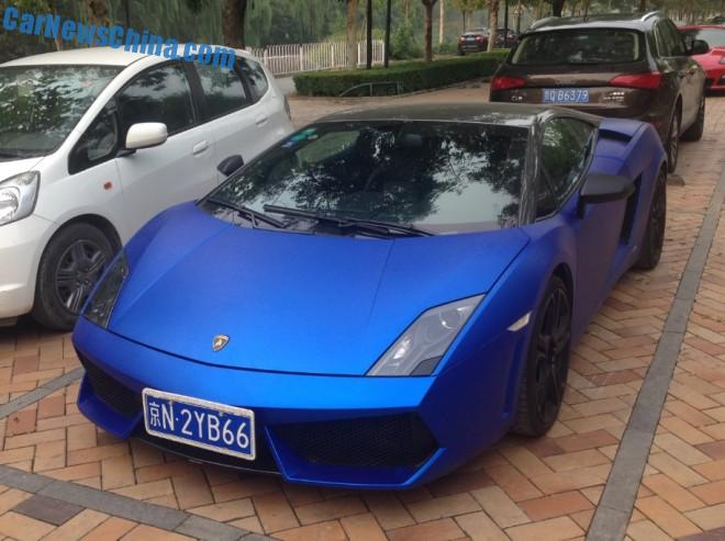 A very flashy Lamborghini Gallardo LP 560-4 Noctis supercar, Spotted in China near the Solana shopping mall in east Beijing. The Noctis was a 2009 Asia-only special edition Gallardo, only available in dark gray/silver or dark blue silver. The owner of this particular Lamborghini thought that was not special enough, and went on to wrap the thing.