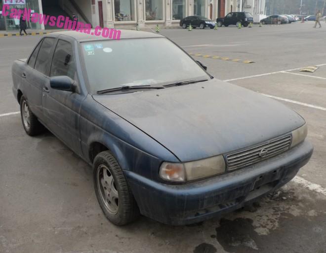 The third generation Nissan Sentra was never officially sold in China, but some arrived via diplomatic of other misty channels. The small license plate area on this once-blue car indicates it is an ex-U.S. example. Wheel covers are period original.