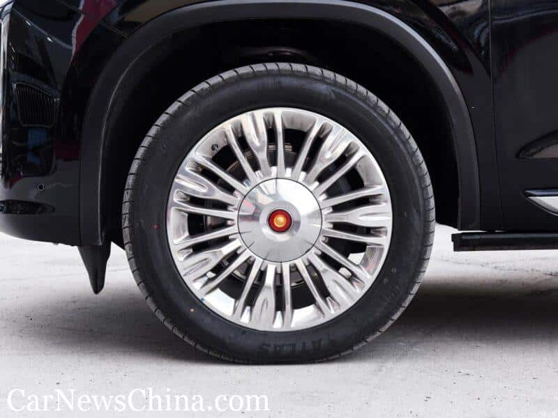 The wheel design is beautiful and is interesting to see Hongqi’s old sunflower logo on the wheel hub. In 2018, this logo was replaced by a new one. This seems another sign of old-school-ness. Perhaps the LS7 has developed like five years ago, canceled in favor of EVs, and then resurrected again.
