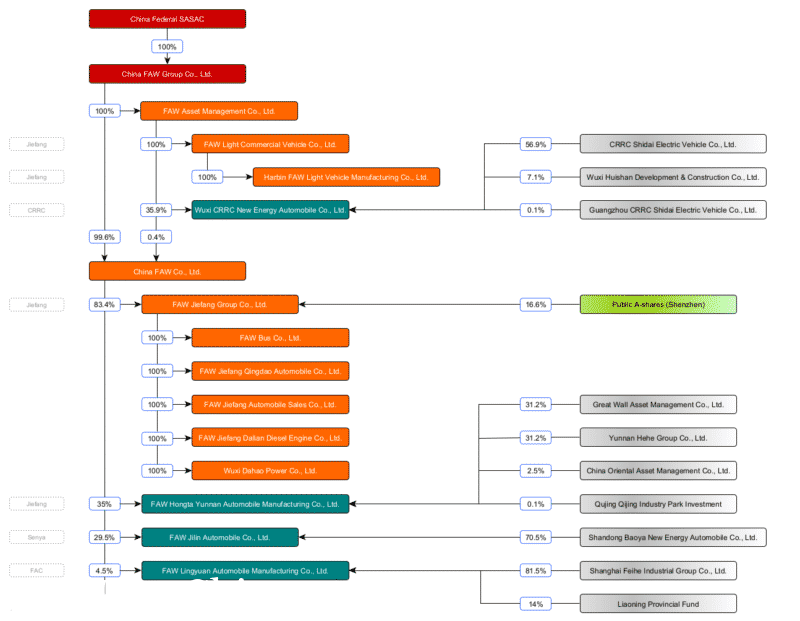 As you can see in the diagram, FAW Jiefang Automobile is now part of FAW Jiefang Group and a listed company as well (on the Shenzhen Stock Exchange). This was achieved by a complicated asset transfer in 2020, which will be explained in the chapter on FAW Car (part 4).