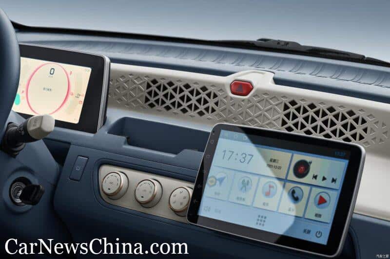 Interior of the Fengguang MINI EV unveiled with an odd LCD screen