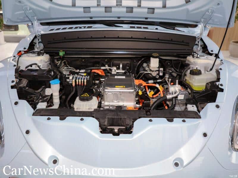 The Ballet Cat is powered by a single electric motor with 171 hp and 250 Nm. The motor is located at the front, whereas the original Beetle had its engine at the back. Battery capacity is 60.5 kWh, good for a 500 kilometer CLTC range. Energy consumption is 13.9 kWh per 100 kilometer. Top speed is 155 kilometers per hour. ORA will also offer smaller battery packs; 47.78kWh for 380 km CLTC and 49.93 for 401 km CLTC.
