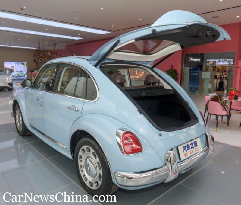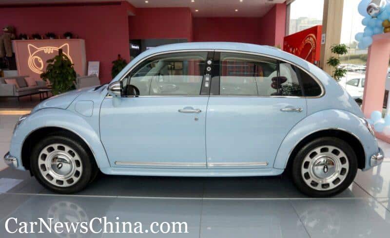 Design is ultra cool and very retro, inspired by the Beetle for sure but rather different at the same time, and that is mainly caused by the extra doors. It has pretty wide wheel arches, chrome colored bumpers, chrome door handles and trim, and brilliantly designed alloy wheels.