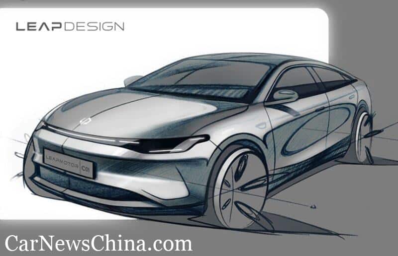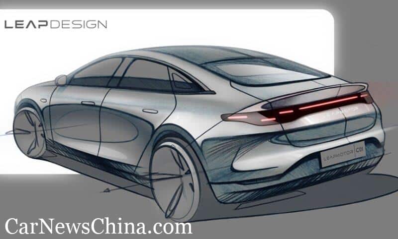 Back to the upcoming C01 sedan. Earlier, Leap Motor released design sketches of the new car, showing a streamlined sedan-coupe body with a sporty stance and a cool light bar between the bonnet and bumper.