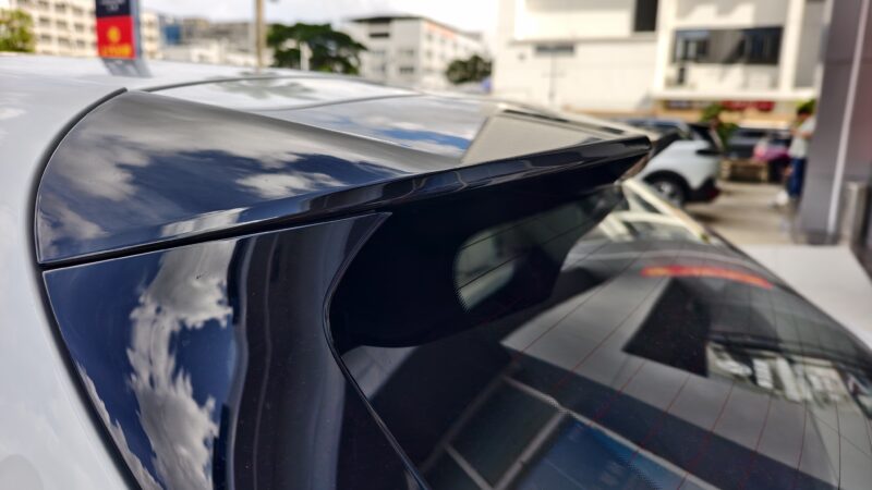 Rear treatment includes a continuous light signature and a tapered tailgate profile that helps control wake. Wheel sizes and tyre selection vary by trim and are chosen to balance rolling resistance and grip. The exterior fit and finish on the displayed vehicles matched segment norms, with consistent panel gaps and assembly tolerances.