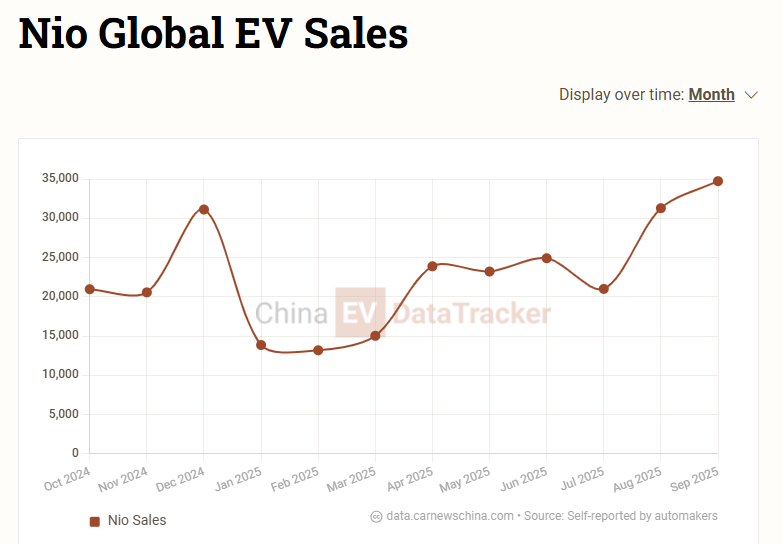 Nio Group delivered 34,749 vehicles in September, up 64% from last year. The Nio brand contributed 13,728 cars, down 33% from last year. The Group’s growth was primarily driven by the entry-level brand Onvo and its newly launched full-size SUV, the L90. The updated ES8 launched on September 20 at Nio Day, and deliveries started the day after in China. Nio ES8 is sold out until March, according to waiting time data from the Nio app.