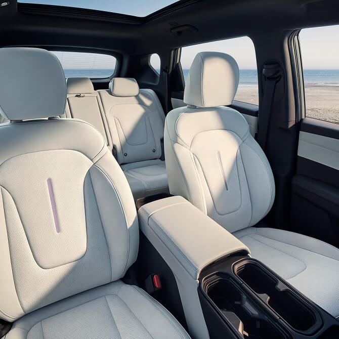 Inside, the cockpit features a 27-inch integrated display, consisting of a large central control screen and a co-pilot entertainment screen, boasting 4K resolution and 1000 cd/m² of brightness. Traditional physical buttons are eliminated from the center console, and a HUD is standard.