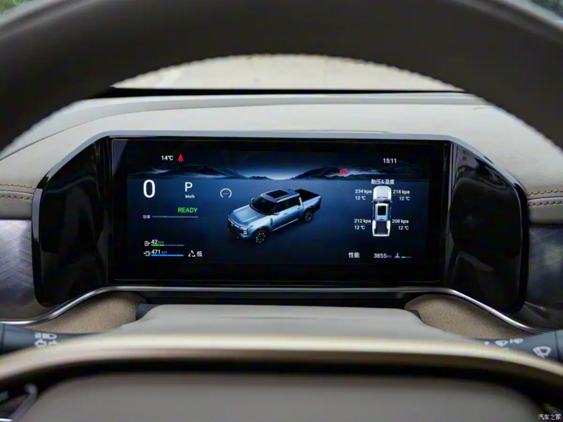 Inside, the Frontier Pro PHEV offers a passenger car-like design with a 14.6-inch central control screen while retaining physical buttons. It comes with a Focal audio system from France and an extra-large panoramic sunroof. The rear doors can open to 90 degrees, and the rear seat backrest offers three-level angle adjustment for comfort.