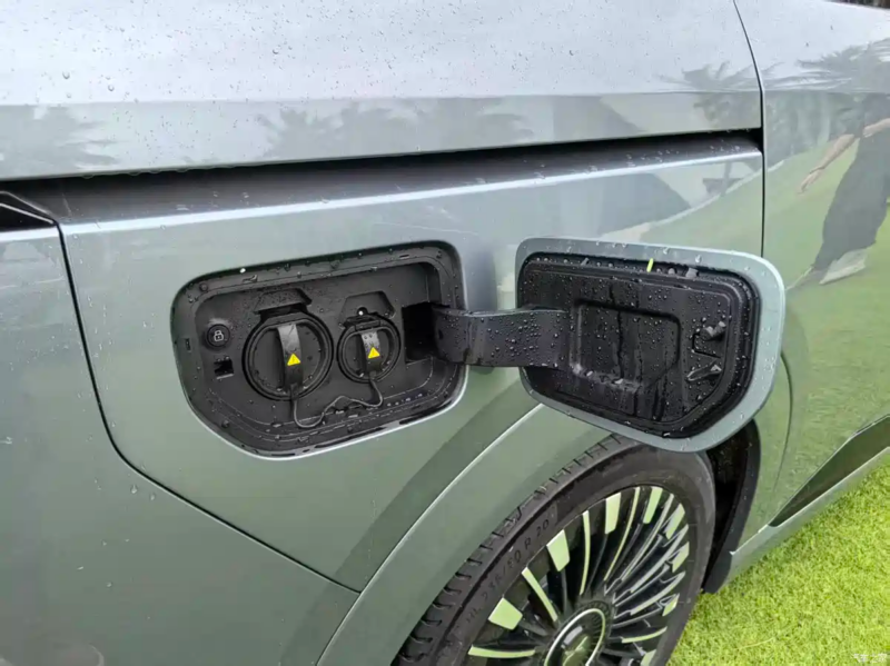 A key differentiator from the all-electric version, the X9 EREV features a fuel filler cap on the left rear fender, while the fast/slow charging ports remain on the right fender. According to previous Ministry of Industry and Information Technology (MIIT) declarations, the XPeng X9 EREV will be equipped with a 1.5T range-extended power system, a 63.3 kWh battery pack, and a 60L fuel tank. Its CLTC pure electric range is 452 km, with a combined range of 1,602 km, and a fuel consumption of 6.4 L/100km.