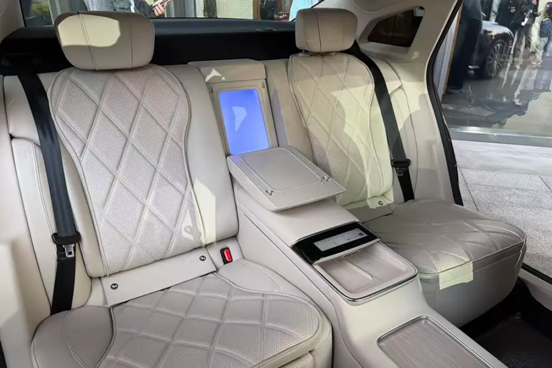 Inside, the Fulwin A9L offers a premium experience. It features a full LCD instrument panel and a two-tone, two-spoke multi-function steering wheel. A floating central multimedia touchscreen dominates the centre console, while the central tunnel area houses air vents, physical function buttons, a wireless charging pad, and dual independent cup holders. Rear passengers benefit from dedicated seat control panels offering ventilation, heating, and massage functions.