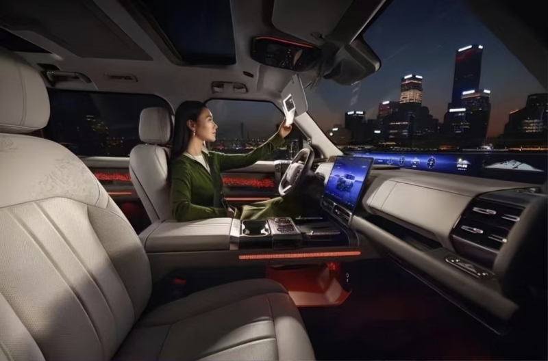 The vehicle’s interior includes a 35.4-inch integrated dashboard display and the Huawei Qian Kun ADS 4 driver-assistance system, using 27 perception sensors for full-scene awareness. Seats feature multi-layer leather construction with ventilation, heating, eight-point massage, and leg-support functions. The G700 also includes a Lescon audio system and an immersive 7.1.4-channel configuration demonstrated at the auto show.