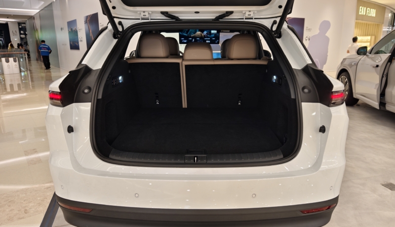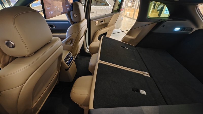 Space remains a strong point. The second row, configured as a conventional three-seat bench, offers generous legroom; in “queen-seat mode”, the rear seat can be reclined with extended leg support, allowing a passenger under roughly 1.70 meters to stretch out with nearly full leg extension. This could work for relaxed commuting or short rest periods, though the front seats must be unoccupied when the mode is engaged. The rear bench is wide enough that even in the middle position, it remains tolerable for a third occupant, and seat backs and cushions provide adequate support.