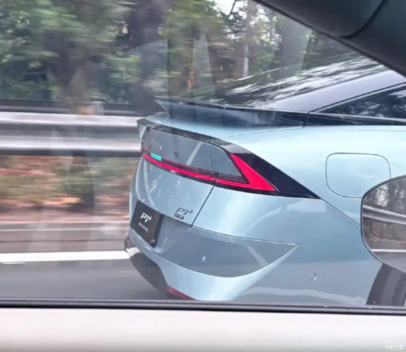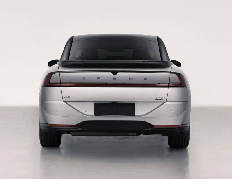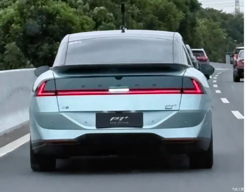 At the rear, the taillight cluster has been redesigned, incorporating a ring-shaped design with the Xpeng brand letter embedded in the center, alongside an auxiliary driving blue light. The rear bumper has also been optimized with a body-colored finish. The ducktail spoiler on the rear window remains unchanged. A “P7+ power ultra” badge has also been noted on the lower right corner.