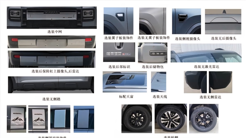 Longer than the Haval Raptor by design, the Haval Raptor Plus’ wheelbase has been extended to 2850 mm, compared to the current 2738 mm. Its length is 4912 mm or 4792 mm (including the rear spare tire), width is 1950 mm, and height is 1886 mm or 1905 mm. For comparison, the 2026 Haval Raptor has a length of 4800 mm or 4680 mm, width of 1950 mm, height of 1843 mm, and has a five-seater layout.