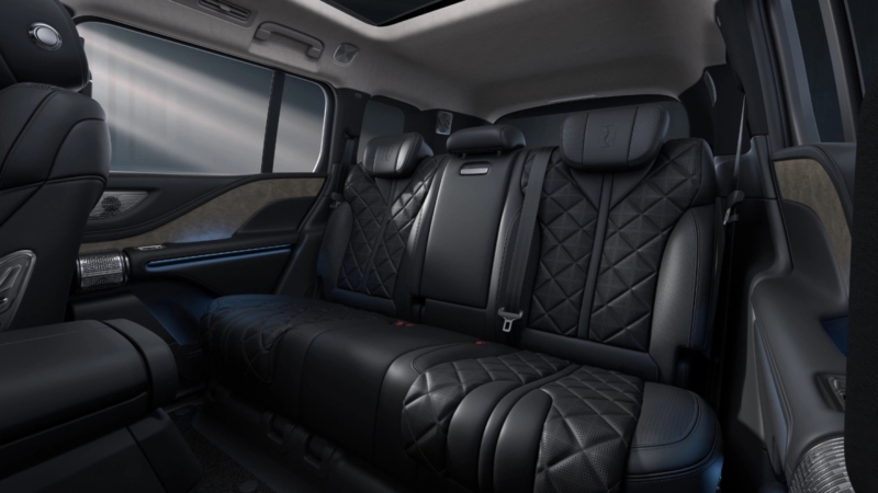 Interior colour options have been expanded to include Kunlun Brown, Danxia Orange, Yanlan Purple, and Yuanshan Grey. Standard equipment includes a DiLink 300 intelligent cockpit, a 70-inch AR-HUD, and a dual-purpose onboard refrigerator. The seating system features Nappa leather, 4-way power lumbar support, massage functions, and memory settings for both the front and rear rows.