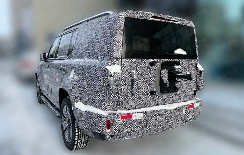 Inside, although heavily camouflaged, the front row reveals a two-spoke steering wheel and column-mounted gear selector. The seating layout is configured in a 2+2+2 layout, suggesting a focus on family-oriented usability in the large SUV segment. Seat cushions appear thick, though detailed features have not yet been disclosed.