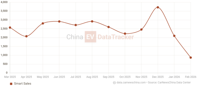 According to previous information, the Smart #2 will adopt a single electric motor in the rear axle and a 30 kWh battery. Its length is around 2.7 meters. The wheelbase reaches 1.9 meters. The Smart #2 aims to boost the brand’s sales in China. According to China EV DataTracker, Smart delivered just 2,974 units in China from January to February 2026.
