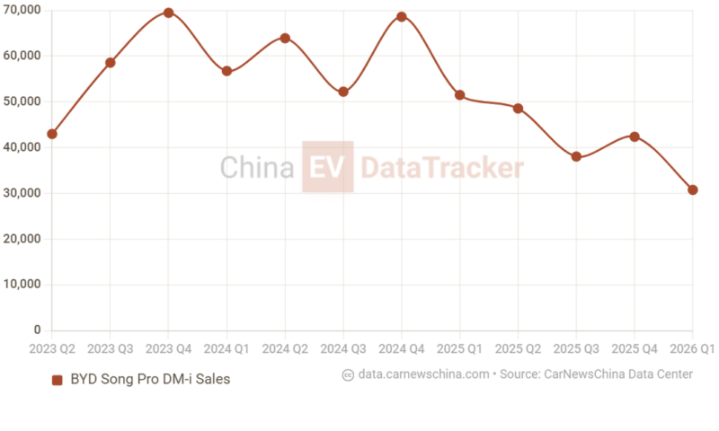 Based on China EV DataTracker, BYD delivered 30,819 units of the Song Pro in Q1 2026, down 40.2% Year-Over-Year. This significant sales drop highlights that the world’s biggest NEV maker needs to launch a more competitive variant of the Song Pro DM-i. BYD got ready to launch the updated car with a bigger battery and fast charging capability.