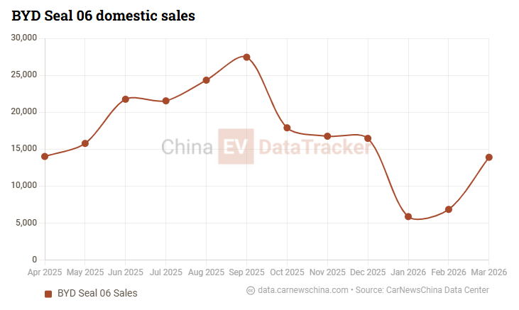 BYD Seal 06 sales in China. Credit: China EV DataTracker