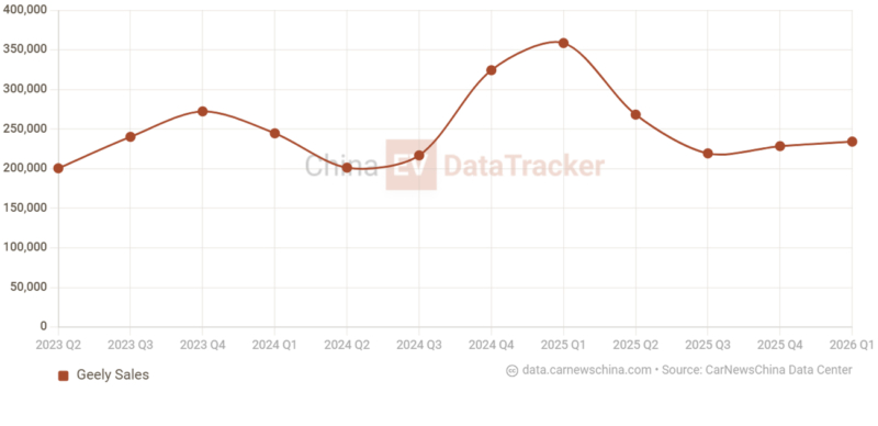 The Geely KX21 will broaden the brand’s domestic model line. At the same time, this HEV car can enter foreign markets as it will be suitable for regions with poorly developed charging infrastructure. We will highlight that the Geely brand (excluding Geely Galaxy) sold around 311,800 units in Q1 2026. Based on China EV DataTracker data, its domestic deliveries reached 234,291 cars, down 34,7% Year-Over-Year.