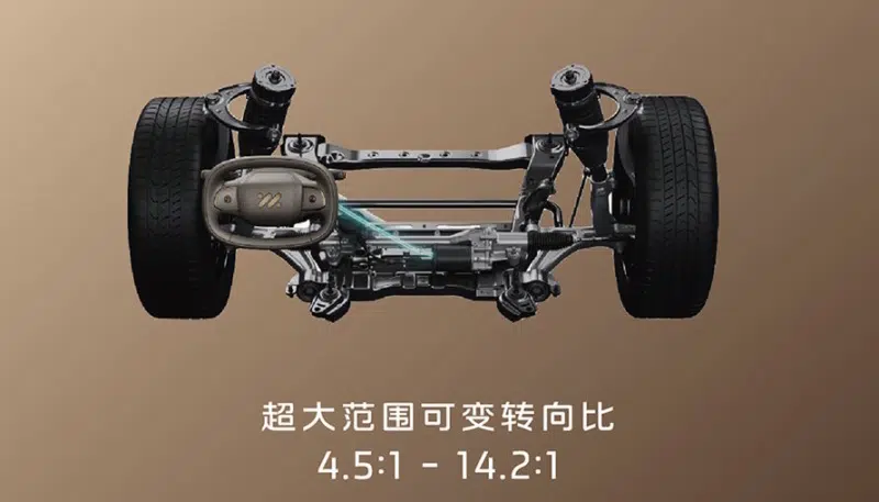 On 66 Ultra trims, IM offers four-wheel steer-by-wire as a 10,000 yuan (1,470 USD) optional pack. This system gives the LS8 variable steering ratio (VSR) functionality, and enables the LS8’s rear wheels to pivot up to 24°, shrinking its turning radius down to 4.85 meters. In comparison, the LS6’s rear wheels can only pivot up to 18°. Though like its smaller sibling, all LS8 trims are equipped with Continental Group’s MK C2 brake-by-wire system.