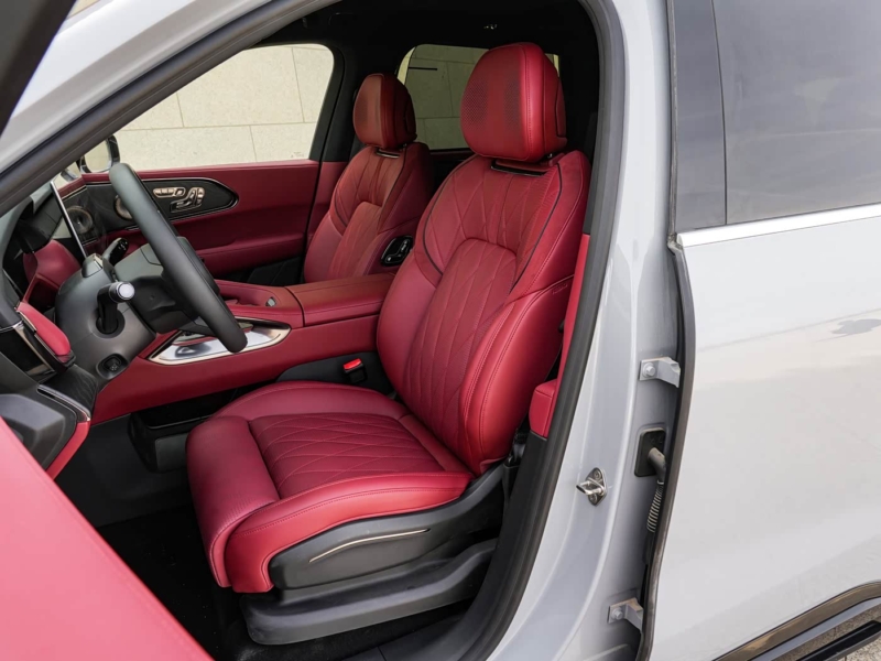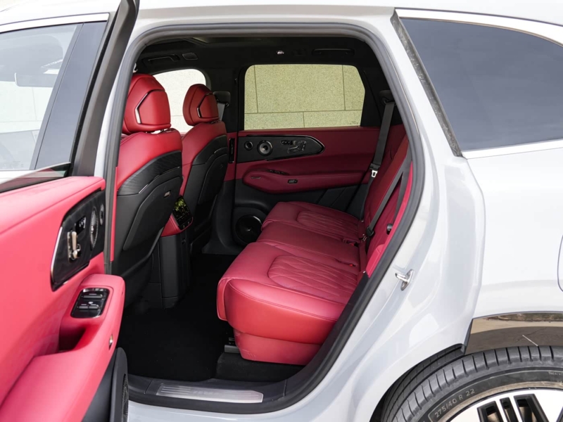 Inside, the 8X offers a high-end configuration with multi-screen integration, including a large central display and rear entertainment options, depending on trim level. Higher variants include rear-seat aviation-style layouts with powered recline and extended leg support.