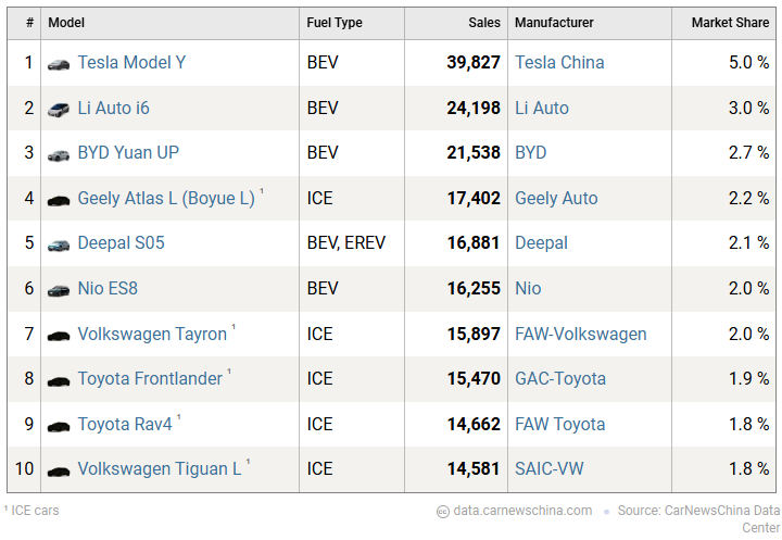 China’s SUV market remains highly competitive. In March 2026, the Tesla Model Y led with 39,827 units, followed by the Li Auto i6 at 24,198 units and BYD’s Yuan UP (Atto 2) at 21,538 units. Traditional ICE models such as the Toyota RAV4 and Volkswagen Tiguan L still maintained positions in the top 10, highlighting the mixed powertrain landscape BYD is entering at the higher end.