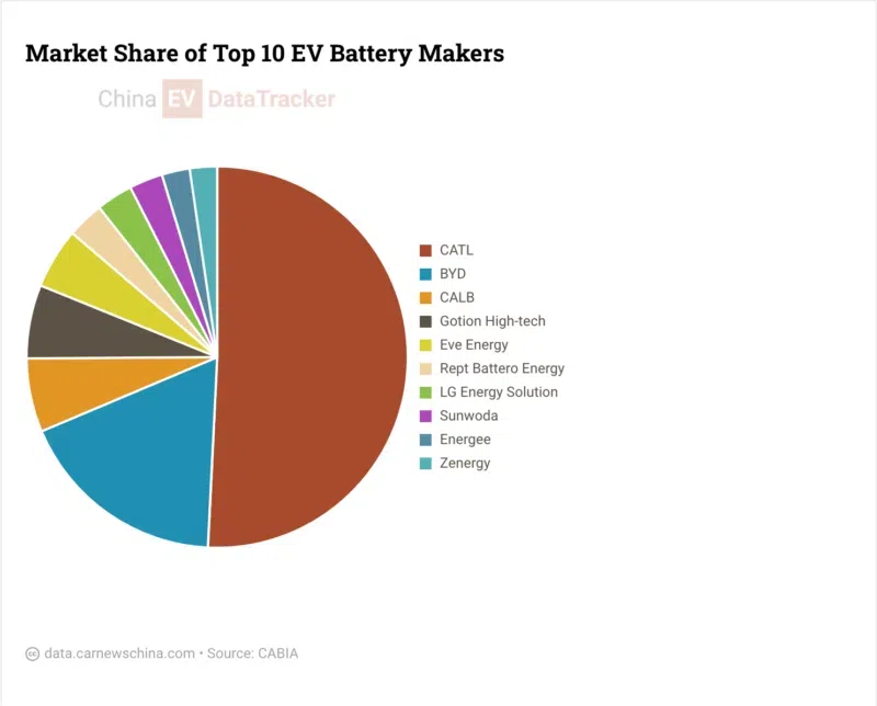 According to CABIA data, CATL ranks first in the power battery market this year with a 48.3% market share, followed by BYD in second place with 17%, and CALB in third with 5.9%. According to CPCA, CATL’s share surpassed 50% already in Q1 2026.