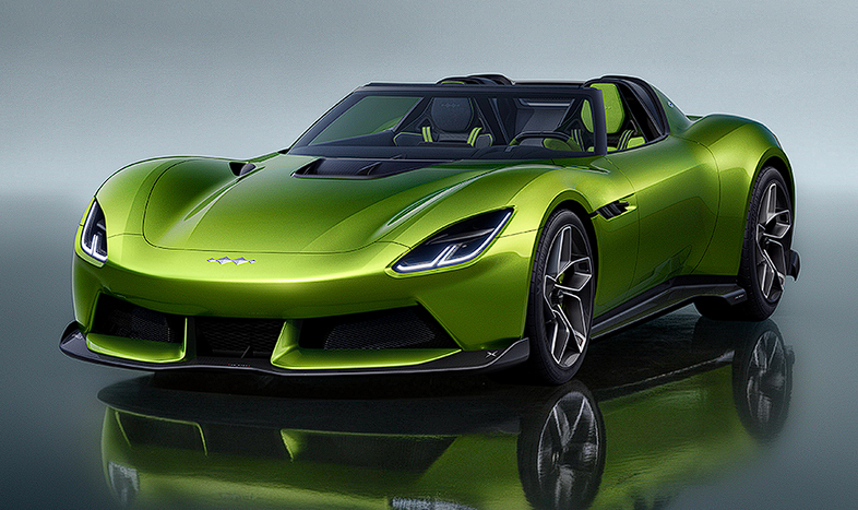 A key technical highlight is the introduction of a full carbon fibre body, which reduces weight. The vehicle also features dramatic door designs, described in releases as both gull-wing and scissor configurations.