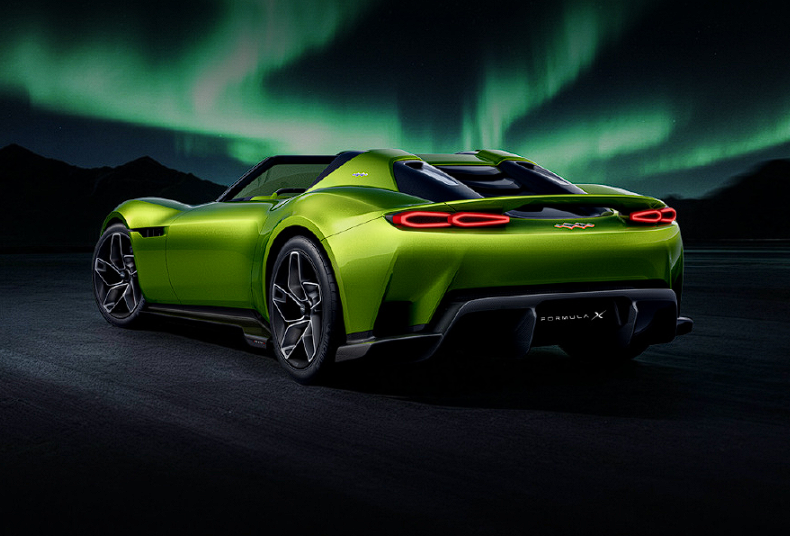 Visually, the Formula X adopts a “Sharp Leopard Eye” headlight design. The body sits exceptionally low to the ground, featuring extensive aerodynamic kits with 19 distinct air vents. The rear end is characterised by “Infinite Ring” taillights, an active electric rear spoiler, and hollowed-out diffusers positioned behind the rear wheels.