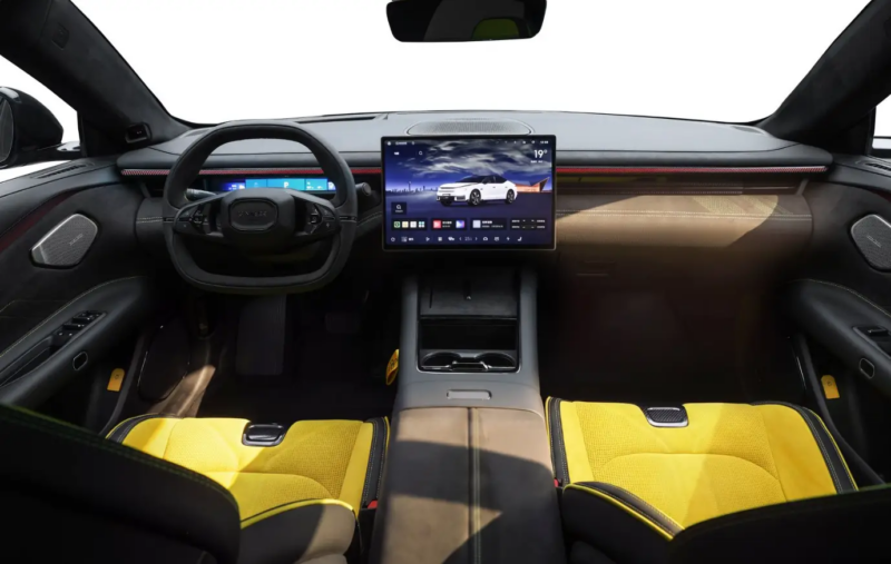 The interior maintains a minimalist tech-focused design. The front row features a 12.3:1 narrow full-LCD instrument cluster, HUD display, and a 15.4-inch floating multimedia screen, forming a three-screen interactive system. The Lynk Flyme Auto system is powered by an AMD V2000A chip.