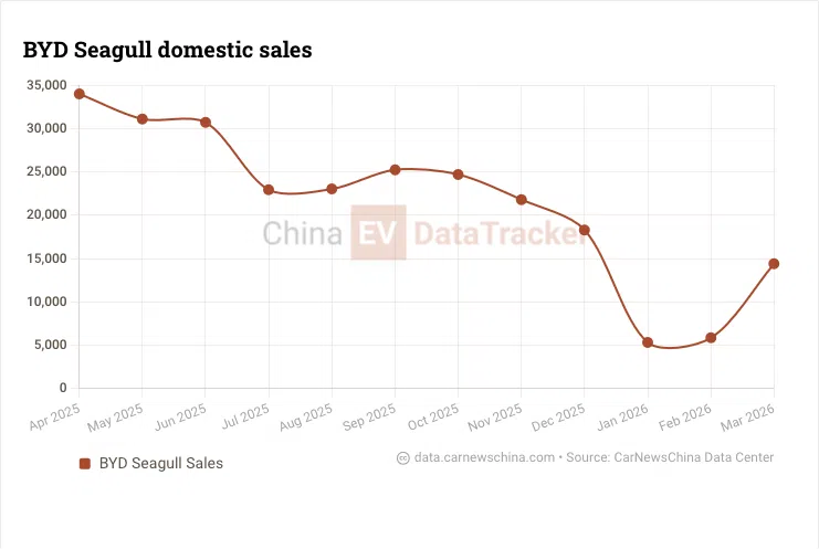 The BYD Seagull hit its peak sales in China over the past year in April with 34,005 units. After selling 30,708 units in June, its sales have never returned to the 30,000+ mark.