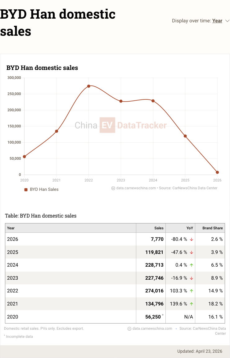 BYD Han’s domestic sales performance.