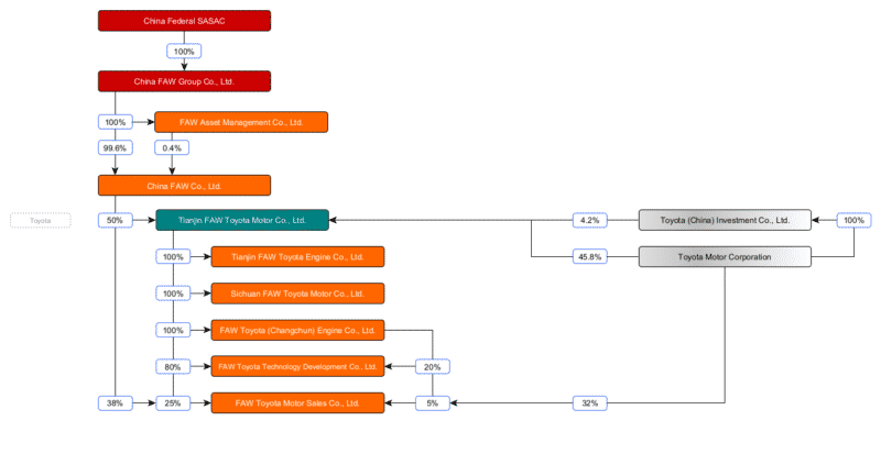 Construction of the factory begins, but the Chinese government adds one final twist to the story.. They consider Tianjin Auto to small and too underfinanced to be credible partner for an international corporate giant as Toyota. So the government forces a merger of Tianjin Auto with FAW, which is of course owned and controlled by the federal government. I say merger, in reality it’s closer to a take-over of Tianjin Auto by FAW. Toyota has no objections. They gain a much stronger partner and direct access to the government.